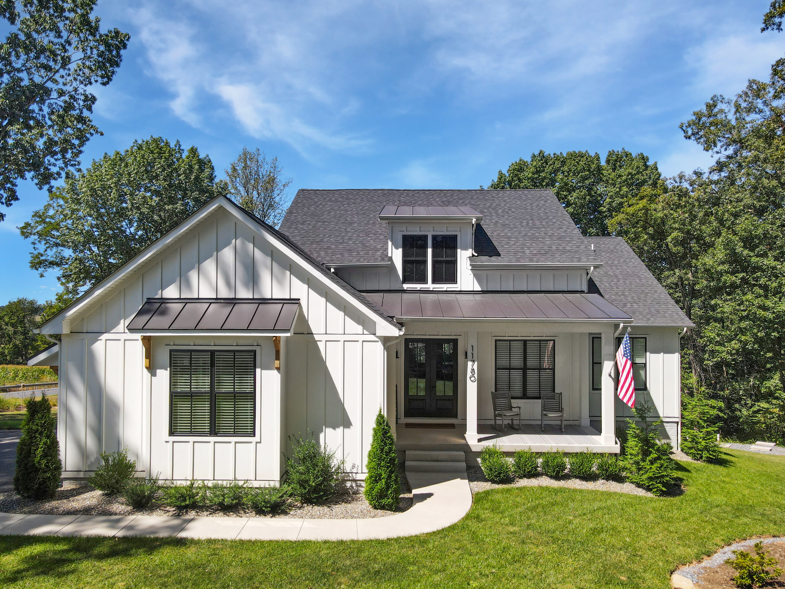 | Stunning Home shows like it’s brand new! Spacious & Open – 2100 SF of Living on the Main Level and an additional 2100 SF of space to complete on the lower level. Main Level Entry boasts a welcoming, covered front porch and double 10′ tall glass doors! Great Room with gas fireplace open to Gourmet Island Kitchen featuring a walk in pantry with butcher block counter, cabinets & shelving. Quartz counters, a Huge Farm Sink, White Soft Close cabinetry, Backsplash, Recessed lighting and Cafe series appliances: 2-drawer Dishwasher, 6 Burner Gas Range, Double Wall Ovens, Refrigerator with Ice & Water, Microwave is built in at Island. Left side of the home is the Primary Bedroom suite features a walk in closet and primary bath with slipper tub, double sink vanity and over-sized walk in shower. There is a Laundry Room with front load washer & dryer, a butcher block counter and cabinetry, an open area with cubbies & hooks to use as you walk inside from the garage. Powder Room! On the other side of the home, there are two additional bedrooms with walk in closets and a full bath with double size walk in shower, an extra area with cabinet and counter as well as the vanity. Engineered hardwood throughout, Ceramic tile in bathrooms, Quartz for all countertops. Specialized moldings throughout. Tankless (propane) Hot Water Heater. Trex style porch (covered at front entry) and decking (covered and off kitchen). Small fenced area at rear for a safe play place for children and pets! Gorgeous lot with seasonal views! The special landscaping has been started – ready for the new owners to bring their own personal touches. |